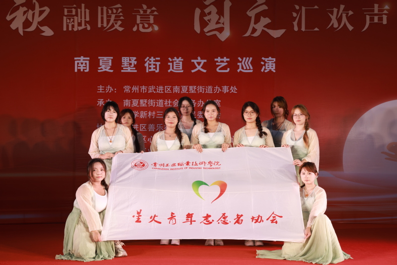 国庆节前期,艺术创意学院组织大学生志愿者,携手共建单位大学新村三社区共同举办“中秋融暖意,国庆汇欢声”南夏墅街道文艺巡演。志愿者们提前排练、精心筹备,为社区居民们带来了民族舞蹈《小城谣》等精彩节目。舞台上,志愿者们舞姿优美、神情专注,将青春活力与爱国情怀融入每一个动作;舞台下,居民们看得津津有味,不时响起阵阵掌声。这场充满温情的文艺演出,不仅为社区增添了节日氛围,更让爱国之情通过志愿服务传递到基层,用实际行动践行“奉献、友爱、互助、进步”的志愿精神,赢得社区居民的一致好评。