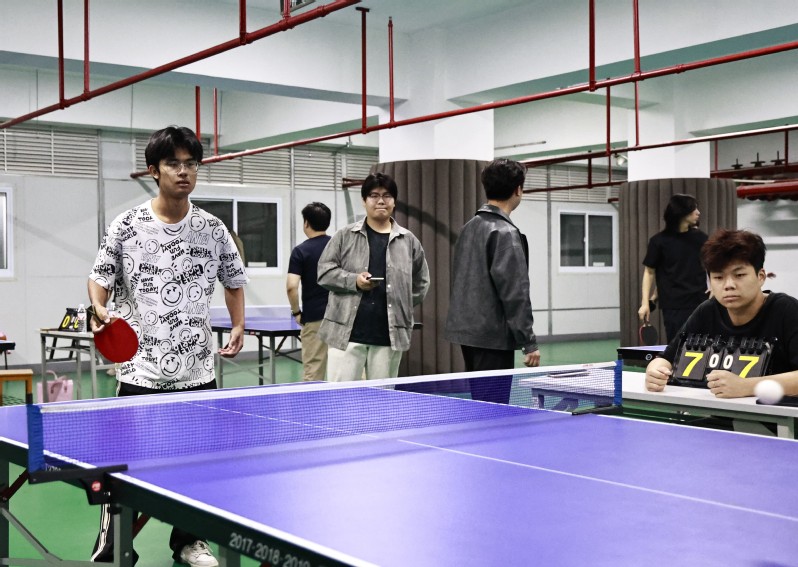 比赛设置男女单打、双打和混双五个项目,师生对抗赛制。教师队根据上周学院全体教师参与的普选赛结果,最终选拔出10名参赛选手,与学生队10名选手进行比赛。比赛中,师生们身姿矫健,直板、横拍灵活切换,扣杀、旋球精彩频现。教师选手沉稳从容,凭借娴熟的技巧掌控节奏;学生选手活力四射,以灵动的战术积极应战。最终教师队在男女单打、女双与混双项目上获得胜利,男双第一则被学生队收入囊中。