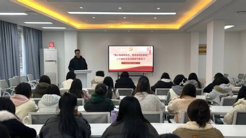黄萍以“解码时代蓝图,书写奋进华章”为题,带领学生深学细悟党的二十届四中全会精神。通过解读“加快构建新发展格局”的核心要义,引导学生以全会精神为行动指引,将个人理想融入国家发展大局,于专业深耕中锤炼过硬本领,在奋斗实干中勇担时代使命,以青春之笔绘就时代华章。