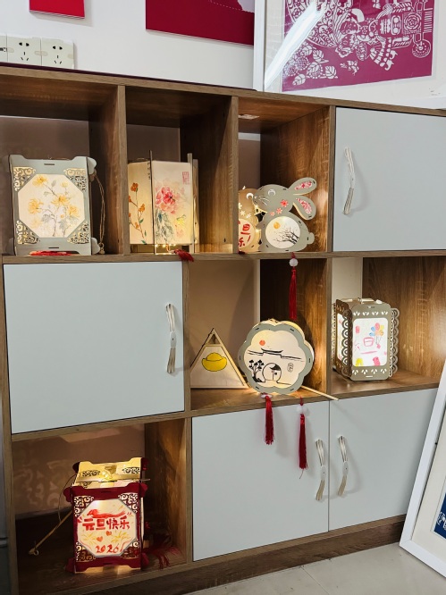 活动中,同学们以三人小组为单位,围绕主题展开构思,融合专业特长设计绘画方案。从传统吉祥纹样到现代青春元素,从红色文化符号到新年祝福话语,各小组在创意碰撞中不断丰富设计内涵。方案确定后,大家灵活运用图案设计、色彩构成等专业知识,以笔传情、以画达意,将真挚的祝福描绘在一盏盏灯笼上。随着创作完成,一幅幅色彩明快、寓意美好的灯笼作品相继呈现,这既展现了同学们扎实的专业功底,也寄托了同学们对新一年的美好期盼。灯笼绘制完成后,同学们带着亲手制作、满载祝福的灯笼走进学生社区,与宿管阿姨一同进行布置。大家齐心协力,将灯笼悬挂在宿舍楼道、党团活动室等公共区域,为社区增添了温馨喜庆、祥和美好的新年氛围。