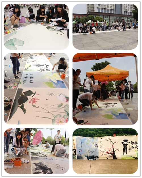 为积极响应江苏省教育厅《关于组织开展全省第十届“校园廉洁文化活动周”的通知》文件精神,推动学院党风廉政建设深入开展,艺术创意学院于6月上旬在学院一食堂广场举行“反腐倡廉”十米长卷大型绘画活动,系团委书记潘逸老师、辅导员丁洁老师亲临现场与同学们一起参加了活动。