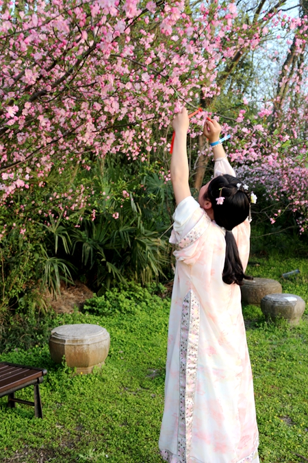 3月28日,艺术创意学院团委组织江苏省优秀社团子衿汉服社前往常州春秋淹城遗址公园,与春秋淹城旅游区团工委一起,共同开展中华传统文化宣传实践活动――“花朝节”祭祀礼。