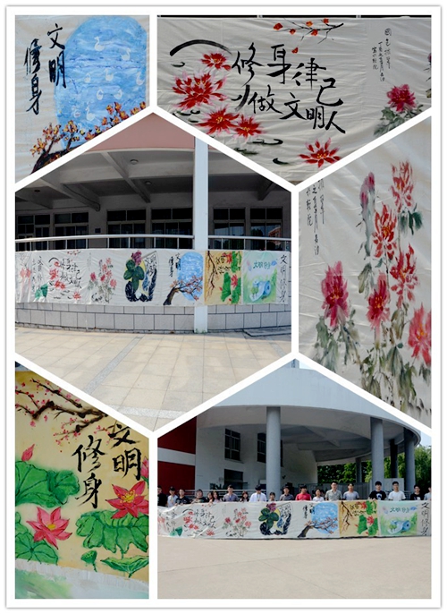为深入贯彻落实立德树人根本任务,大力培育与践行社会主义核心价值观,进一步推动文明校园建设,教育引导广大学生提高文明意识和养成文明行为习惯,艺术创意学院于517日举行“文明修身”十米长卷大型绘画活动。系团委书记潘逸老师、辅导员丁洁老师亲临现场与同学们一起参加了活动。