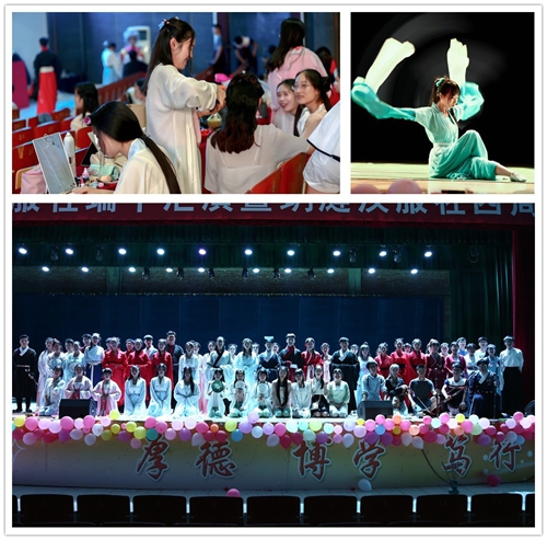 晚会首先由一曲“大鱼海棠”二胡伴舞拉开序幕,接着还有“长安歌”汉舞独舞、戏曲“梨花游园之国色天香”、朗诵伴舞“为汉服的浅吟低唱”等精彩节目。子衿汉服社作为主办方出演汉舞“千古”,表达了汉文化悠远的意境。另外,晚会还准备了我国传统行酒令文字游戏――“飞花令”、传统礼仪宴饮游戏――投壶作为互动环节,不仅再现了传统文化,而且十分具有趣味性。最后是压轴节目“汨罗魂”,表演人员以庄严肃穆的舞台剧,与现场的观众一同缅怀一代爱国诗人屈原。
