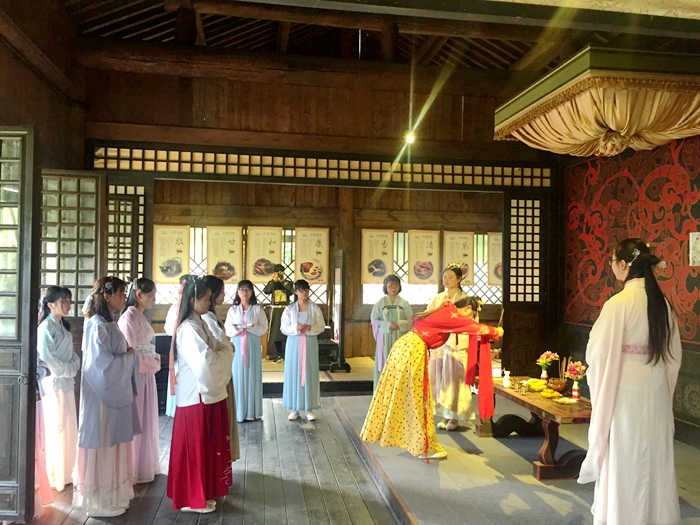 3月28日,艺术创意学院团委组织江苏省优秀社团子衿汉服社前往常州春秋淹城遗址公园,与春秋淹城旅游区团工委一起,共同开展中华传统文化宣传实践活动――“花朝节”祭祀礼。