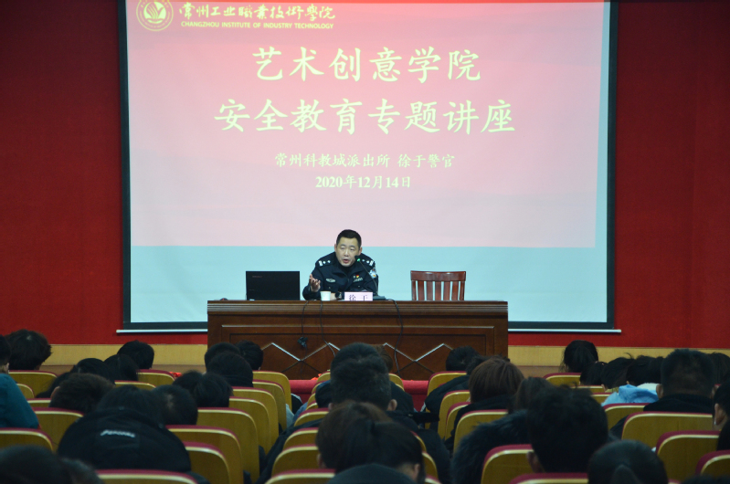 为加强学生安全教育,提高学生安全防范意识,12月14日,艺术创意学院在教3201室举办安全教育主题讲座,常州科教城派出所徐于警官受邀担任主讲,学院党总支副书记孟庆霞主持活动并讲话。