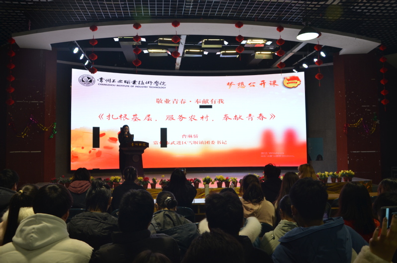 青年,拥有最好的时光,拥有丰富的知识。这些都是当代青年的财富。青年,就应该不断接地气,在农村扎根,为“三农”的腾飞贡献自己的力量。本次梦想公开课,艺术创意学院团委邀请到武进区雪堰镇团委书记曹琳骄给学生们带来了《扎根基层,服务农村,奉献青春》的主题分享。曹书记结合了自己多年在农村工作的经历,分享了自己从一名大学生村官到成长为一名村干部的故事。农村工作要情系百姓、服务基层,才能将工作做到农民的心里。她还用“小尾巴”“小海绵”做比喻,讲述自己如何在基层向百姓学习,向村干部学习的故事。在实际工作中,她不断运用自己的所学的知识,帮助村民办实事,推动乡村旅游发展,从而带动农产品销售,促进农民增收。她将自己的青春扎根在农村、在基层,为新时代美丽乡村建设奉献青春力量。