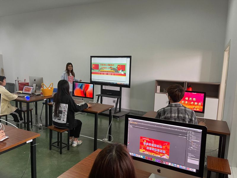 19数字媒体班的同学在老师布置课题后,迅速投入到设计制作前期准备工作中去,在任课老师的指导下,通过网络和书籍寻找素材,细致思考寻找设计突破点,通过分组讨论互补互助,群策群力,营造了积极向上的学习氛围。同学们在设计制作过程中逐渐解了百年来我党从无到有,从弱到强的百年辉煌历程,进一步坚定了同学们努力学习,争做新时代国家建设主力军的信心。设计制作完成后,大家踊跃展示自己的作品,并讲解自己的设计理念,很多优秀作品引起了同学们的共鸣。