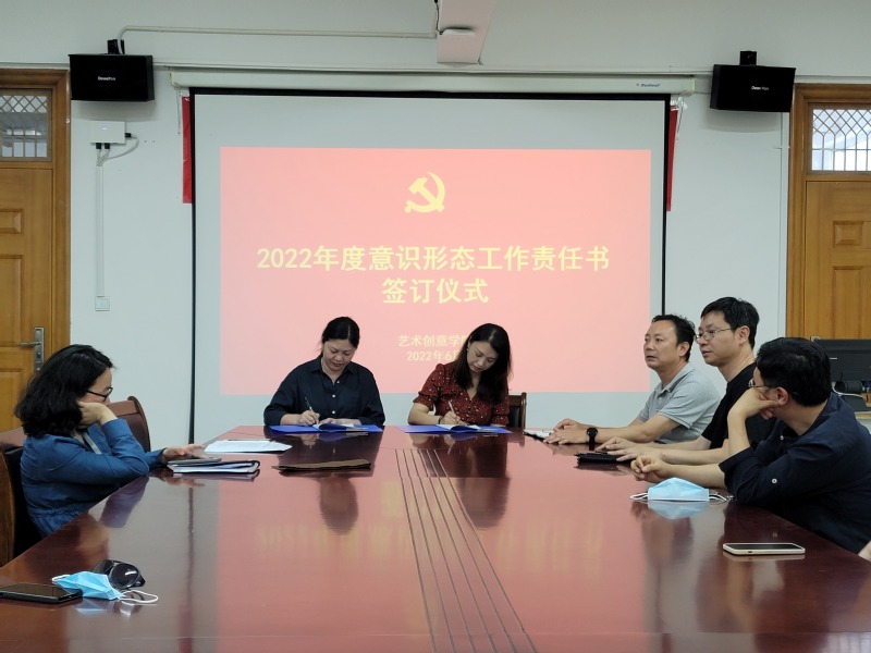 管卫中传达学校关于意识形态工作相关会议精神,要求全体教职工必须充分认识到高校意识形态工作的重要性和迫切性,把思想政治工作贯穿到日常学习工作中,切实增强做好意识形态工作的自觉性和坚定性。会上,管卫中与总支委员、艺术创意学院党总支副书记孟庆霞与班主任依次签订《艺术创意学院2022年意识形态工作责任书》。