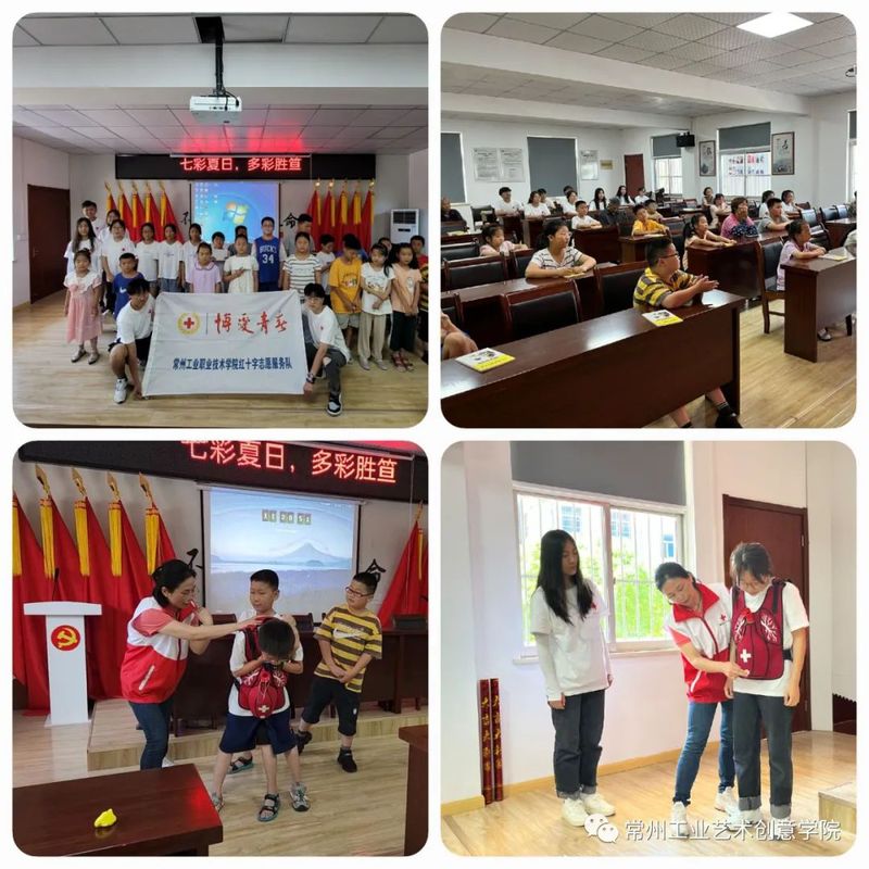 志愿服务队联合溧阳市红十字会开展了家门口的红十字会课堂,特邀溧阳市红十字会应急救护讲师周红担任主讲,课堂有针对性的选择了暑期防溺水和气道异物梗阻救护两个较为常见突发情况作为内容。活动最后,志愿者们还向同学们发放应急救护包以增加安全保障。此次活动强化了未成年儿童自我救护和安全意识,感受了红十字精神,同时也向他们传播了“人人学急救,急救为人人”的理念。