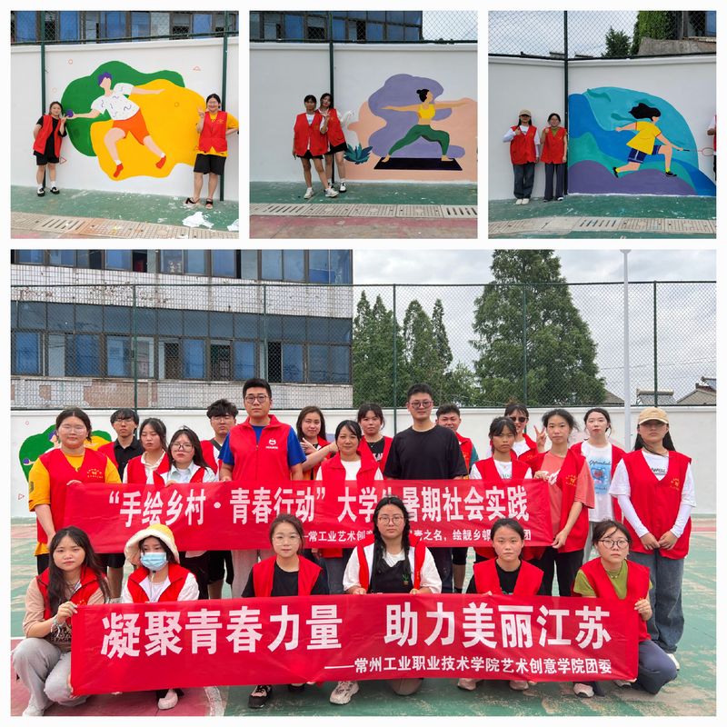 为了学习贯彻习近平生态文明思想,深入践行“凝聚青春力量 助力美丽江苏”专项行动。2022年暑期,常州工业职业技术学院艺术创意学院“以青之名 绘靓乡邨”实践团赴常州市金坛区河头村开展“手绘乡村”主题墙绘志愿服务活动。通过墙绘的艺术形式助力美丽乡村建设,改善人居环境。
