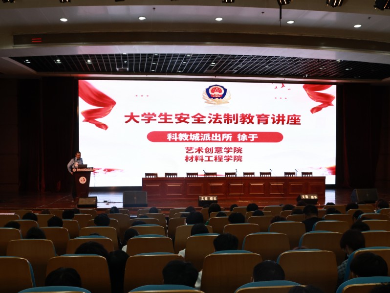 为了全面提高学生的法制观念和安全意识,维护校园安全稳定。10月19日,艺术创意学院与材料工程学院联合开展安全法制教育讲座,特邀科教城派出所徐于警官担任主讲,艺术创意学院与材料工程学院2022级全体学生参与本次讲座。