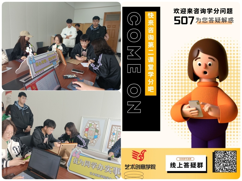 为了更好的服务学生,规范有序开展基础团务工作,解答学生的各类疑问,艺术创意学院团委每周三下午在敬业楼507安排学生干部值班,专门负责解答学生各类团务问题,服务内容涵盖智慧团建关系转接、第二课堂PU账号登录,第二课堂学分申请等问题,同学们可以在这个时间段内直接到现场咨询和办理相关事宜,实现一站式服务。此外,答疑还开通了线上咨询渠道,方便学生通过线上线下多种途径解决问题,保障学生团务问题能够得到有效快速的解决。