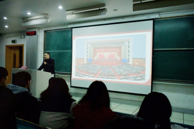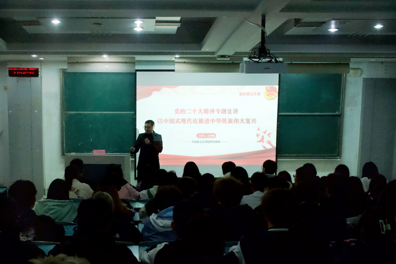 宣讲会上,王风圳老师带领学生们一同回顾了党的二十大报告,重点围绕大会主题、主要成果和重大意义,过去五年的重大成就和新时代十年的伟大变革,马克思主义中国化时代化的最新成果,中国式现代化,全面建设社会主义现代化国家部署要求,坚持党的全面领导和全面从严治党,党对广大青年寄予殷切期望等方面,对党的二十大精神进行了全面、深入、系统的解读。