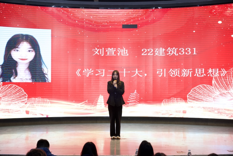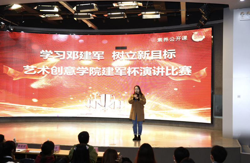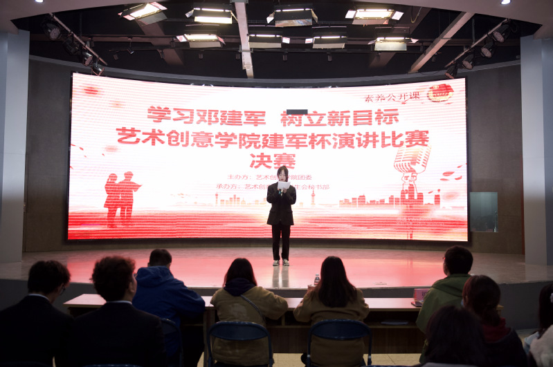 经过前期初赛,最终10名选手进入了决赛环节。比赛现场,选手们的演讲声情并茂扣动着在场每一位观众的心弦,他们或娓娓道来,或慷慨激昂,充分表达了自己“学习邓建军,树立新目标”的决心。演讲中,选手们结合自己所了解的优秀校友邓建军的先进事迹,畅谈了自己的感想。每位同学都展示出了深厚的演讲功底,同时也彰显了艺术创意学院学子们积极向上的精神风貌。精彩的演讲博得了现场观众们的阵阵掌声。最后,丁老师为本次演讲比赛做点评发言。