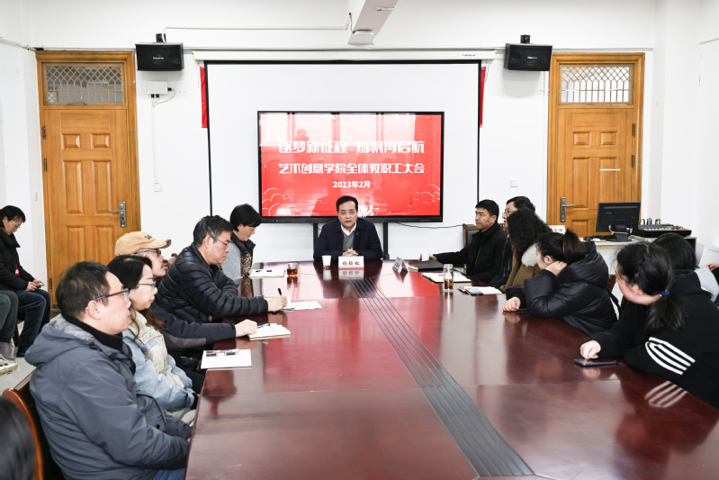 新学期、新气象、新作为。2月12日,艺术创意学院召开全体教职工大会,校长杨劲松、副校长吴丽云出席会议并讲话。会议由艺术创意学院党总支书记王丽萍主持。