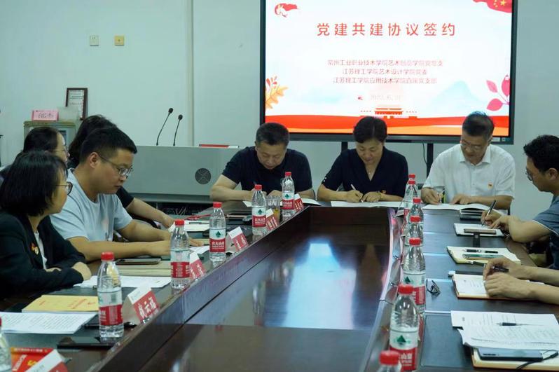 首先,常州工业职业技术学院艺术创意学院党总支与江苏理工学院艺术设计学院党委和应用技术学院直属党支部三方举行党建共建协议签约仪式。