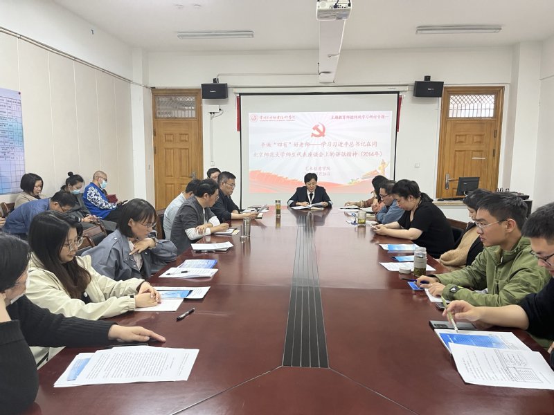 立师德。5月24日艺术创意学院党总支组织全体教职工学习《习近平总书记在同北京师范大学师生代表座谈会时的讲话》精神并展开研讨,以8次师德师风主题教育活动为契机,以立德树人为根本,争做有理想信念,有道德情操,有扎实学识,有仁爱之心的‘四有’好老师,夯实学院教师道德素养之基,为学校高质量发展助力。