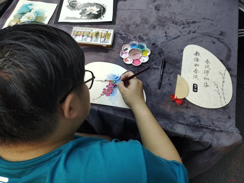 在中国传统文化里,扇子有着深厚的文化底蕴,“扇”与“善”同音,寓意善良美好。教师节前夕,艺术创意学院团委积极组织广大学生们发挥专业特长,亲手绘制清凉团扇,把最真诚挚的祝福和最真诚的感恩写在扇面上,融于画笔中,精心制作了一把把精美的手绘扇子。