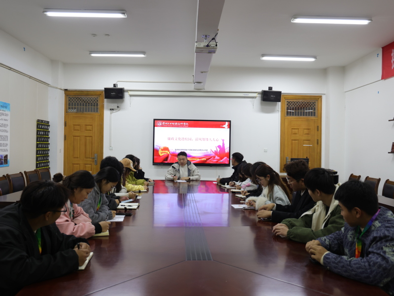 为全面加强学生干部队伍建设,塑造学生干部形象,引导学生干部不忘初心、牢记全心全意为同学服务的宗旨,2023年11月21日,艺术创意学院开展了“廉政文化进校园,清风缕缕入人心”廉洁自律主题素养公开课。本次培训由艺术创意学院辅导员刘天宇主持和讲解,艺术创意学院学生会主要学生干部、班团干部参与了讲座。