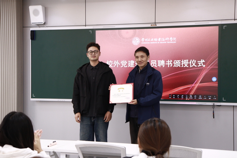 宣讲结束后,校外党建辅导员聘请仪式正式举行。学生党支部书记肖克为倪筱荣教授颁发聘书。肖克表示,此次聘请是学院整合优质育人资源、创新党建工作形式的重要举措,将助力学生实现艺术专业能力与思想觉悟的双向提升。倪筱荣也现场表态,将以校外党建辅导员身份,持续关注青年学生成长,引导学生把党建思想与艺术专业深度融合。