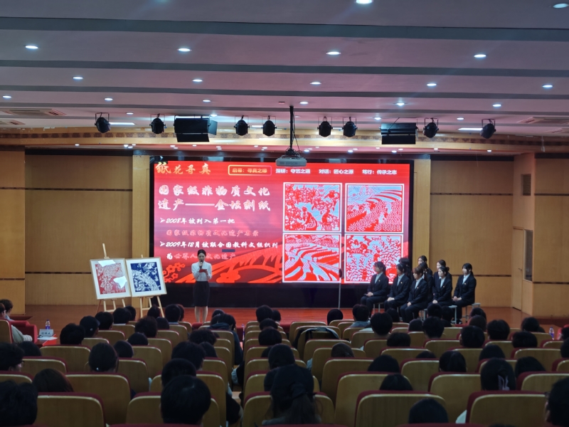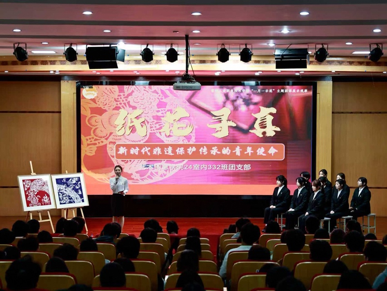 10月29日,艺术创意学院“一月一示范”主题团课如期举行。校团委副书记涂艳群,各二级学院分团委书记以及全校团支部书记、新团员代表齐聚一堂,共同聆听“纸花寻真—— 新时代非遗保护传承的青年使命”主题团课,在金坛刻纸的匠心传承与创新实践中,探寻青年一代的文化担当与传承之道。