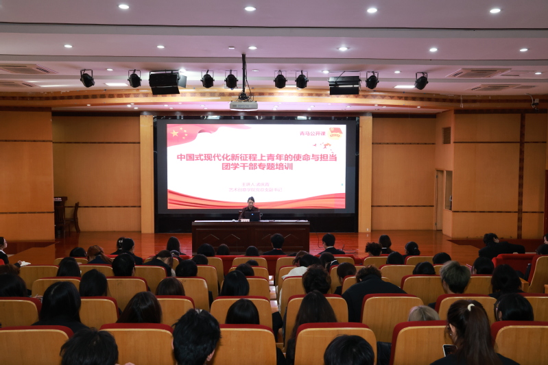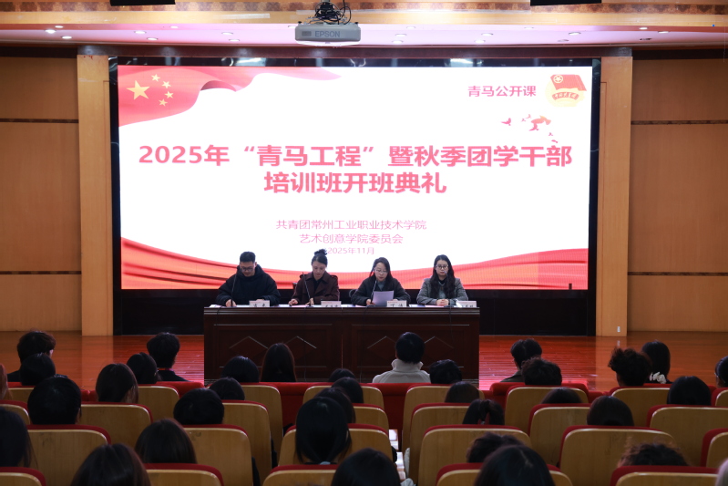 为深入学习贯彻习近平新时代中国特色社会主义思想,落实党的二十届四中全会精神与团的十九大精神,加强学生干部队伍建设,提升青年学子的政治素养与综合能力,11月25日,艺术创意学院2025年“青马工程”暨秋季团学干部培训班开班典礼在知行楼报告厅隆重举行。艺术创意学院党总支副书记孟庆霞、团委书记丁洁、全体辅导员及培训班全体学员参加了开班典礼,典礼由丁洁主持。