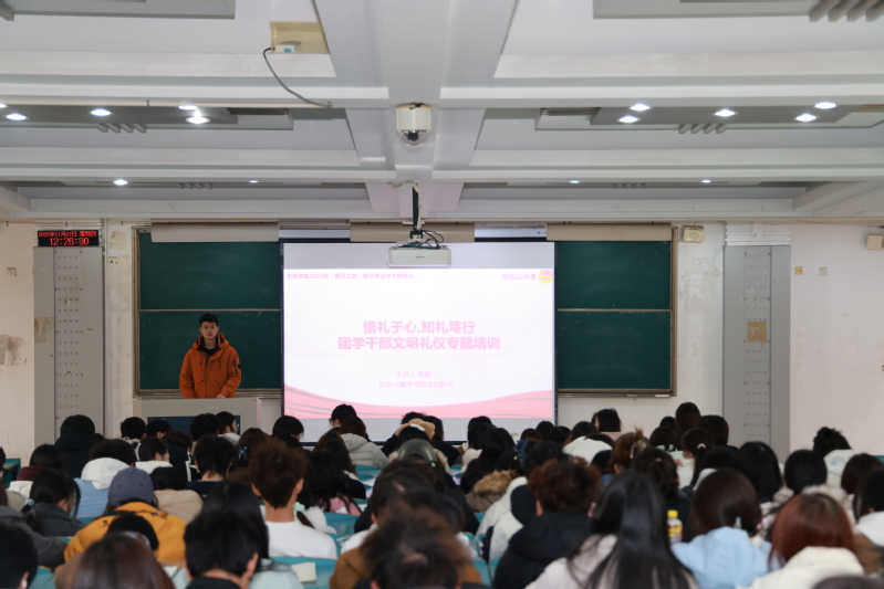 近期,艺术创意学院在知行楼2109教室成功举办“悟礼于心 知礼笃行”文明礼仪专题讲座。本次讲座特邀旅游与康养学院李章一老师主讲,全院“青马工程”100余名培训学员参加。