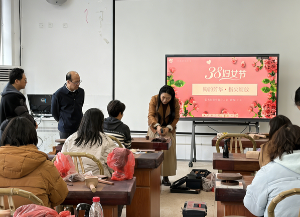 春和景明,万象更新。3月 8日下午两点,艺术创意学院 “陶韵芳华・指尖绽放” 三八妇女节陶艺主题活动在文体中心大师工作室开展。学院全体女教职工、院领导班子成员齐聚一堂,学校校长王志华亲临现场指导,与女同胞们共庆佳节、共话传承。
