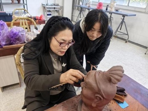 王晓丽身兼中国工艺美术大师、正高级工艺美术师、江苏省非物质文化遗产项目代表性传承人等职,是常州工业职业技术学院艺术创意学院的核心教师,其工作室获评中国工艺美术大师传承创新基地,育人成果辐射全国,众多学员成长为行业骨干。依托中国工艺美术大师传承创新基地院校平台,她以传承为初心、以创新为使命,打破传统紫砂教学边界,将人工智能等前沿科技融入育人体系,组建大师领航+ 科技赋能+ 工艺支撑的金牌教学团队,推动传统紫砂技艺与现代数字技术深度融合,让工匠精神在教学相长中永续传承。